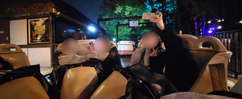 넓은 공원을 함께 걸으며 분위기를 즐기고, 친구들과 신나게 놀이기구도 탔습니다.