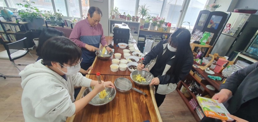 참여학생 모두 성심껏 본인의 쿠키를 직접 만들고 선생님과 친구들에게 나눠주며 같이 시식도 해보는 풍족한 수업시간이었습니다.
