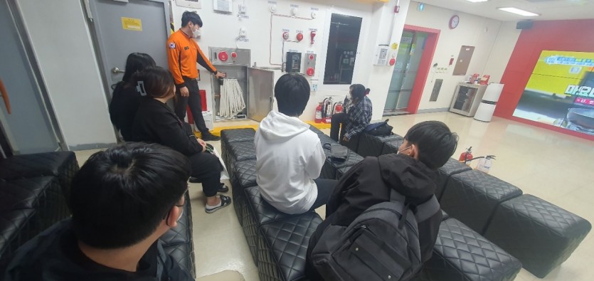 지진대피체험, 응급처치교육, 완강기 체험, 비상탈출체험, 소화기 사용 체험, 비상구 탈출 체험 등 다양한 체험을 한 날.