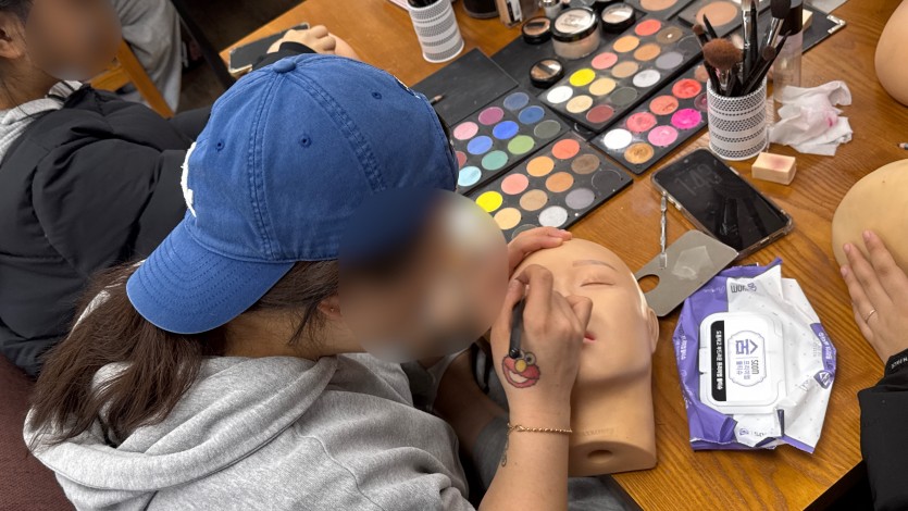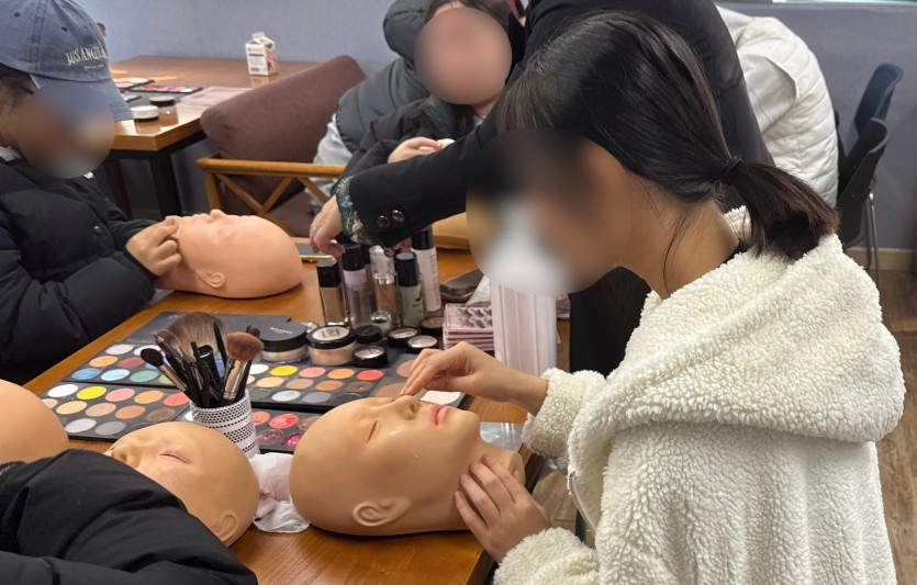 이번 수업에서는 가을 웜톤을 주제로 따뜻한 분위기에 어울리는 색조와 메이크업을 함께 살펴보았습니다. 아이들은 얼굴 모형을 이용해 단계별로 메이크업을 실습하며, 가을 특유의 부드러운 톤을 표현해 보았어요.