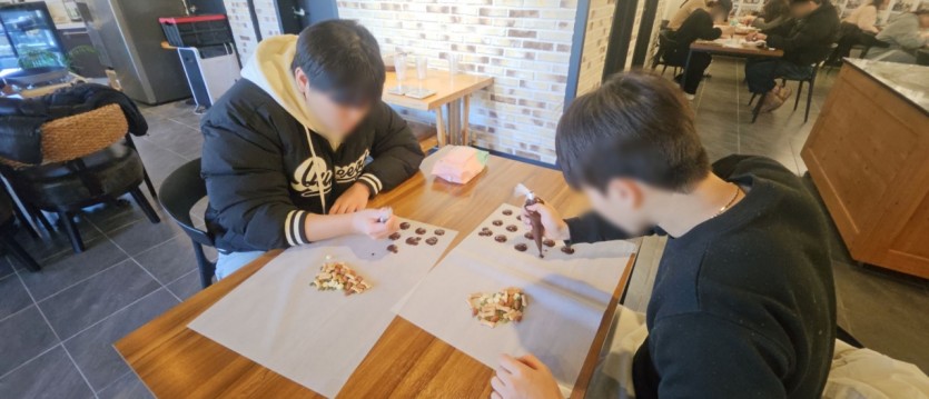 처음에는 조심스럽던 아이들도 점점 익숙해지며 자신만의 초콜릿을 완성했고, 서로의 작품을 보며 웃음과 감탄이 이어졌습니다.