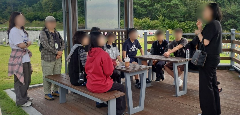 학생들은 선생님의 안내와 함께 현충탑과 묘역을 참배하며, 평화로운 오늘이 얼마나 큰 희생 위에 세워졌는지를 마음에 새겼어요.