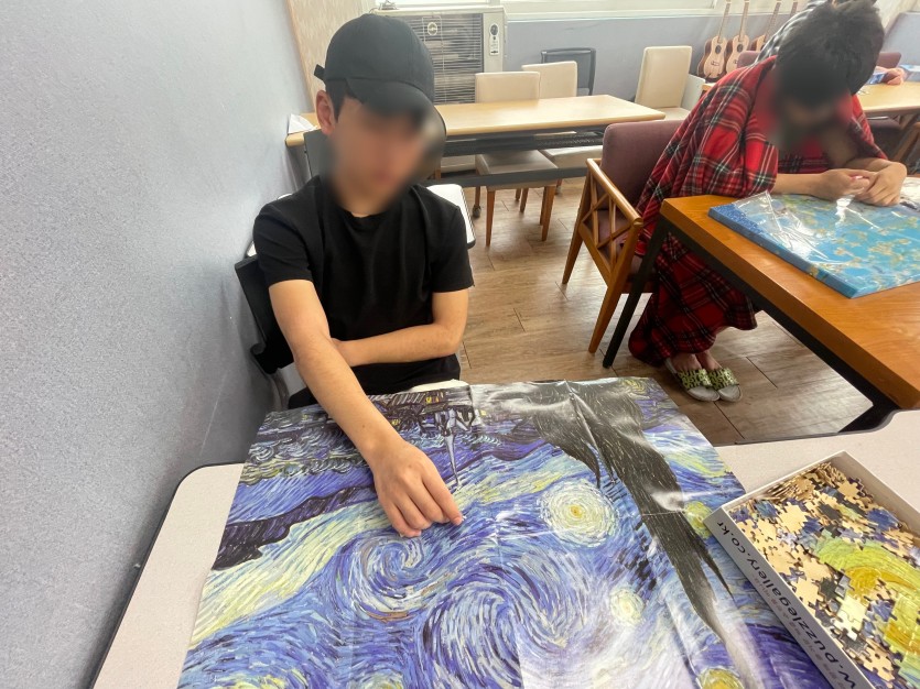 퍼즐을 완성한 뒤에는 각자의 감각으로 색을 입히며 나만의 명화를 완성했어요.