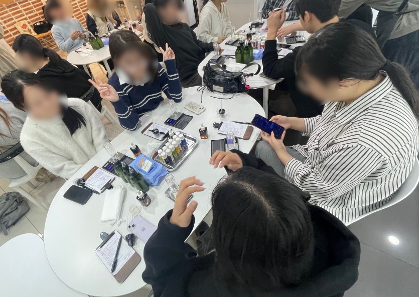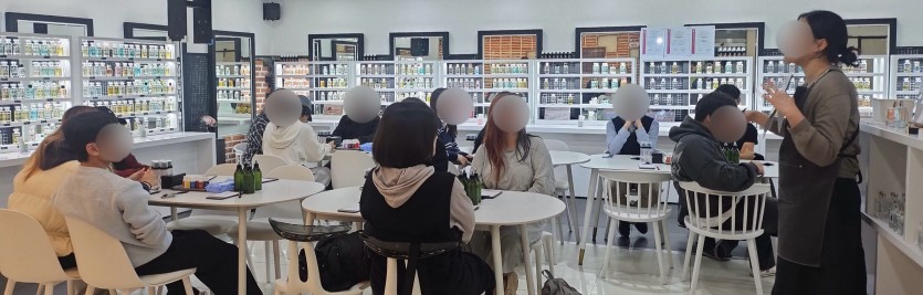 오늘은 조향사 선생님의 수업을 들으며 향의 기본 원리를 배우고, 직접 향료를 배합하며 나만의 향수를 만들어보는 시간을 가졌습니다!